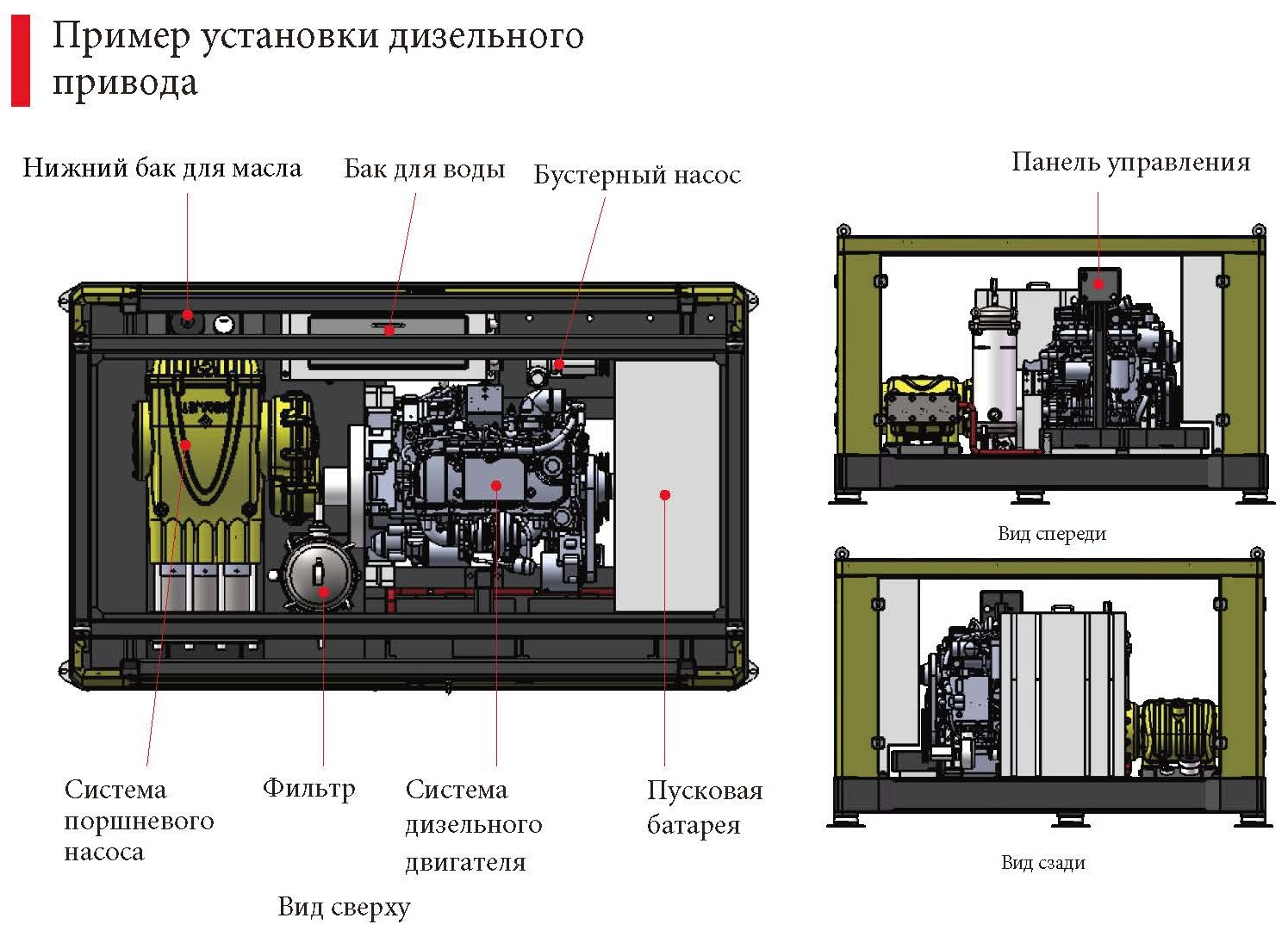 Конструкция P160 обеспечивает максимальную мощность 160 л.с. (117 кВт) при скорости до 1000 об/мин, что гарантирует стабильное давление и равномерный поток жидкости.